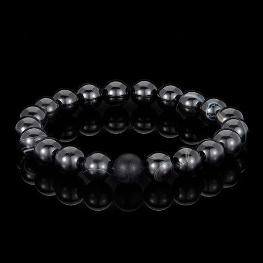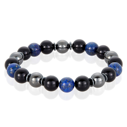 Onyx, Hematite & Lapis Bead Stretch Bracelet