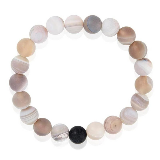 POLISHED LABRADORITE AND BLACK MATTE ONYX STONE BRACELET